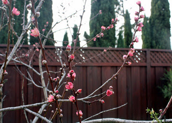 我が家の貧弱な桃の木にも花が咲きました♪